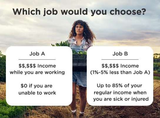 Job A will pay you $80,000/year while working and $0 if you are unable to work due to an injury or illness.